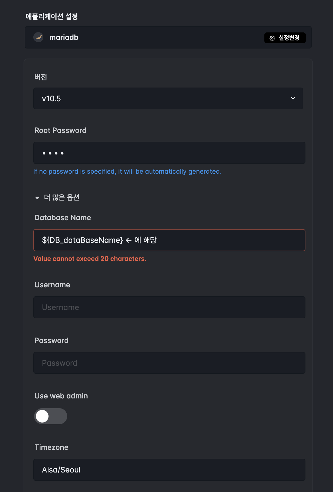 DataBase Name : 스프링 부트에 ${DB_dataBaseName} 해당하는 것, 데이터베이스 이름을 설정해주시면 됩니다.